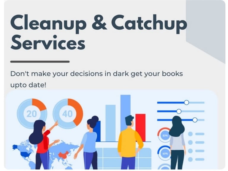 Maintaining clean, accurate and up-to-date financial records is essential for the success of your business. We will conduct a thorough analysis of your past records and accounts to help identify and resolve discrepancies, and streamline your financial data for better organization and efficiency. With our services, we can help you clean up your QuickBooks account to be in perfect order, allowing you to focus on running your business. Our team will offer guidance on best practices for bookkeeping, including tips on data entry, reconciliation, and reporting. Let us help you achieve financial clarity and confidence with our professional cleanup services ... more